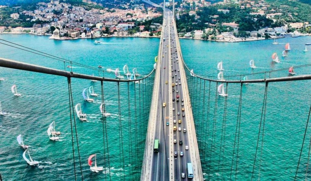 Через Босфорр побудовано три великі автомобільні мости, які з’єднують Європу та Азію.